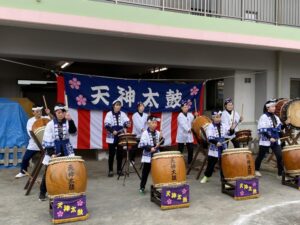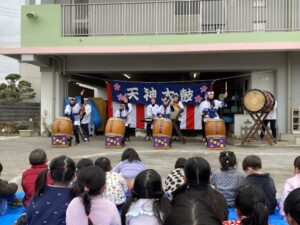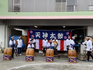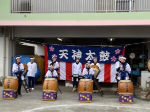地域の「入り天神太鼓保存会」の皆様をお招きして